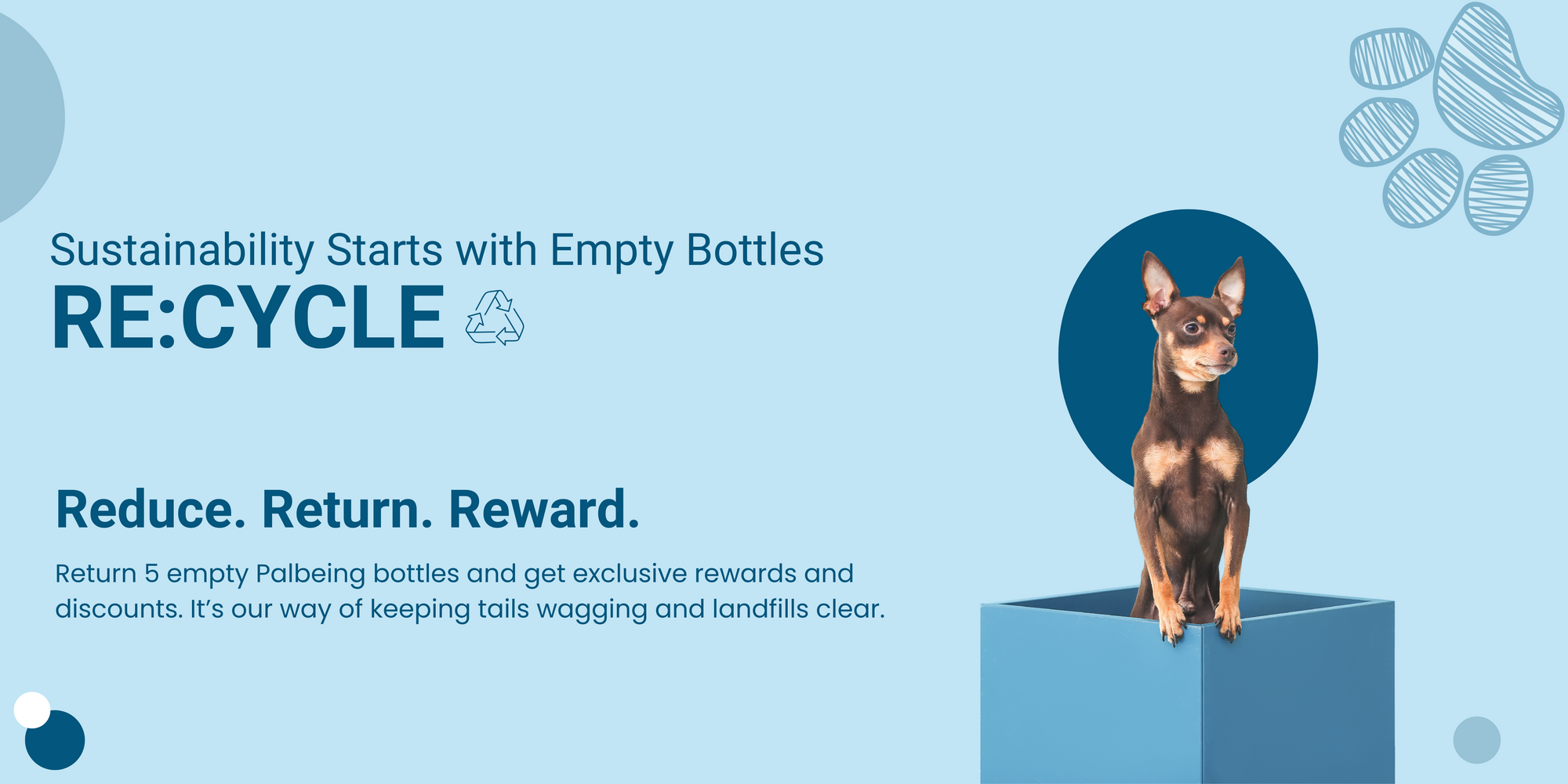 A circular take-back program where pet parents can return 5 empty Palbeing bottles. We’ll arrange a pickup, ensure responsible recycling, and reward them for joining us in reducing plastic waste and carbon footprint.